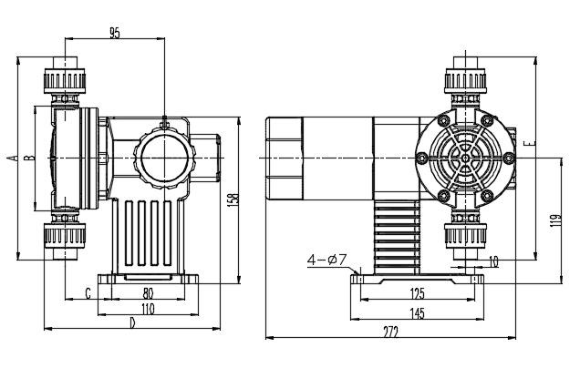 Дозирующие насосы серии MG могут транспортировать жидкости с температурой -15 ℃ ~ 60 ℃, вязкостью 0,3 ~ 1000cps, коррозионные или некоррозионные жидкости, не содержащие твердых частиц. Номинальный диапазон расхода насоса составляет 15 ~ 130 л / ч, с соответствующим максимальным выходным давлением 10 ~ 4 бар. Расход насоса можно регулировать с помощью маховика от 0% до 100%, независимо от того, работает насос или нет.